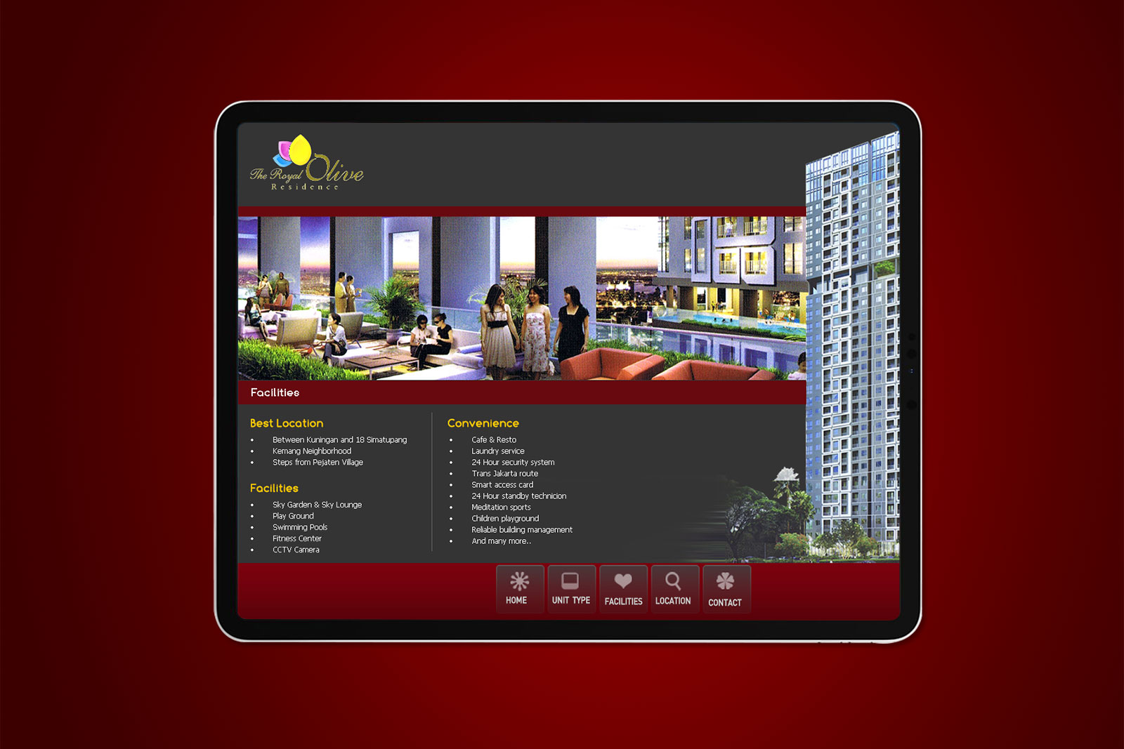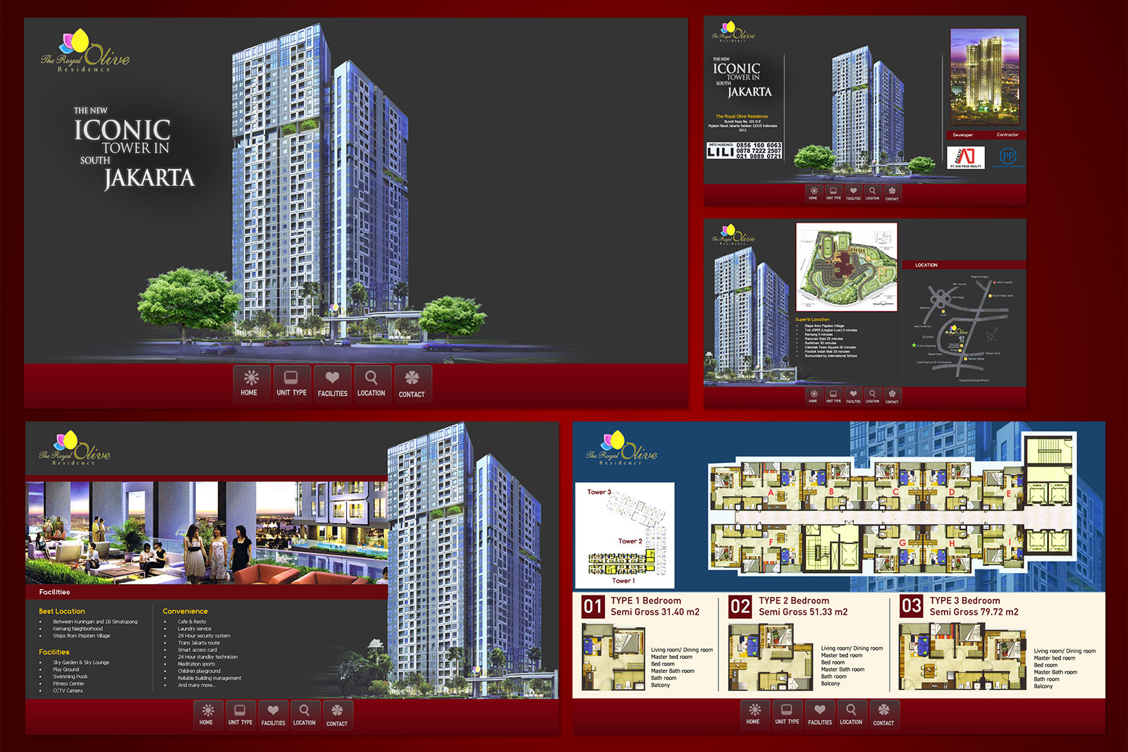 The concept of making an Apartment application Sale contains 5 main pages, each of which has a detailed sub menu. On the main menu there are options that lead to the sub-details menu, the product menu contains a description of the product in general, the product detail and travel package.
